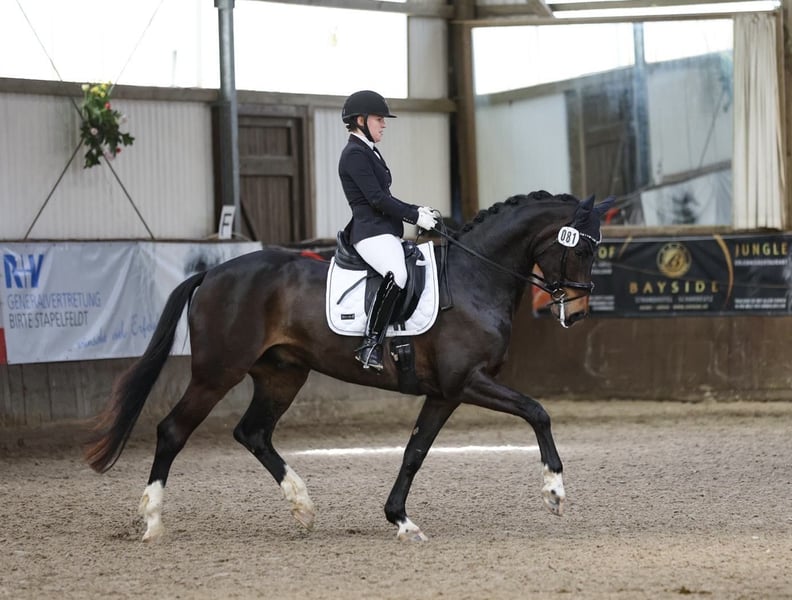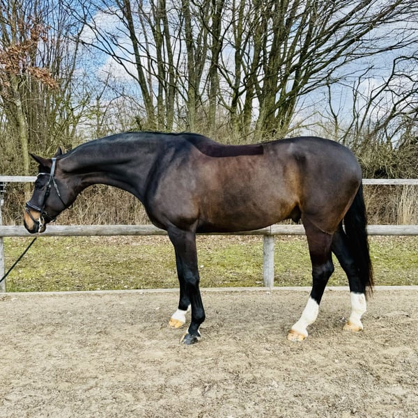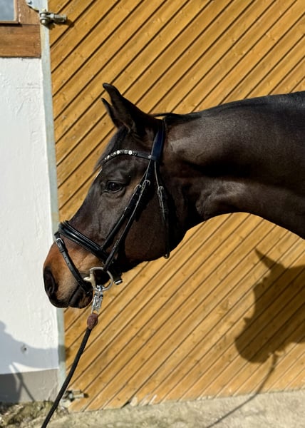 Selling 9-year-old gelding, born in 2017, by Foundation out of Dimaggio (2x), dark bay, 16.1 hh, with three above-average gaits. Winner of Dressage Horse Level L with a 8.5, and 2nd/3rd place finishes with scores over 8. First Level ** bridle achieved on the first attempt. Currently competing at M level and ready to start the season. Has potential for further development. Due to the current rider's training level, he has not yet been fully promoted. Good TÜV from 2023 (including neck, cervical spine, back) available. Location: near Lübeck, Schleswig-Holstein Please contact me exclusively by phone at 0152 05721077. I may not respond to written inquiries.