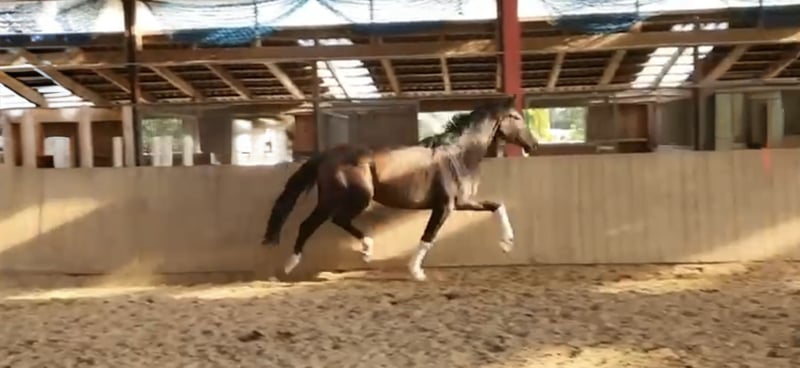 Impressive and movement-rich breeding mare available due to farm closure. She has produced very athletic foals so far (additional videos available via WhatsApp) and takes them up very well. Well-socialized, she is very easy to handle and gets along well with other mares, avoiding conflicts. The mare is currently pregnant by Mc Laren, due in May 2026. She can be re-bred after foaling and may be moved in the fall after weaning, or, upon request and for an additional fee, sold pregnant. Unfortunately, she has a defect, which is why she is offered at a favorable price to a good home! (Further details gladly provided in person) If interested, please feel free to call or message via WhatsApp at 0172-2942839.