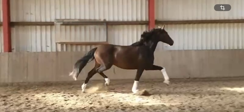 Sehr imposante und bewegungsstarke Zuchtstute wegen Betriebsauflösung zu verkaufen. Sie hat bisher sehr bewegungsstarke Fohlen ( weitere Videos gerne per WhatsApp) gebracht und nimmt sehr gut auf. Gut sozialisiert ist sie sehr verträglich mit anderen Stuten und geht Ärger aus dem Weg. Die Stute ist aktuell tragend von Mc Laren für Mai 2026. sie kann nach dem Abfohlen neu besamt werden und im Herbst nach dem Absetzen umziehen oder auf Wunsch auch tragend gegen Aufpreis verkauft werden. Leider hat sie einen Mangel, deshalb günstig in gute Hände abzugeben!! ( Näheres gerne persönlich) Bei Interesse gerne einfach anrufen oder per WhatsApp schreiben unter 0172-2942839
