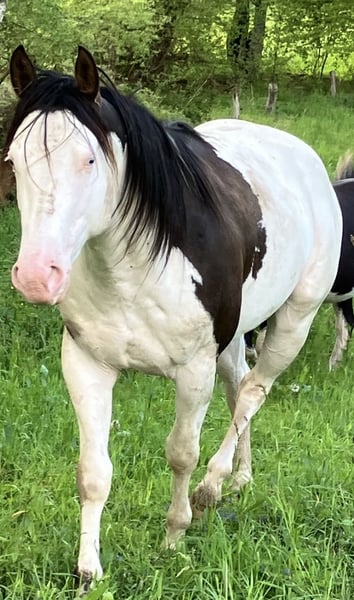 PHB PHANTOM MACHO GUN( Ee aa SW1/SW1 DW20/DW20 et 7 panels negatifs !!) PAINT HORSE noir splash pleins papiers US et FR né le 22 mai 2025. PHANTOM est négatif au frame overo,homozygote splash et homozygote dw20 , un candidat parfait pour faire un futur étalon, étant donné qu’il est l’un des 1 ers produits de notre Etalon importé du Canada( LOVERSEA SPLASHY GUN, lignée colonels smoking gun), avec une conformation massive et musculeuse par les 2 parents Zita comme Loversea. Sa mère est une grande et grosse Jument, avec un peu de halter dans son pedigree, elle a l’habitude de nous faire de magnifiques poulains très bien conformés. Son père est un Paint 75%quarter horse, arrière petit fils de Colonels smoking gun, nous l’avons du Canada, un très bon mental, grosse morphologie , mais avec de la puissance et de la rapidité. Nos chevaux sont élevés en troupeau, avec les étalons, et une partie d’entre eux est montée en loisirs, l’éducation des poulains se fait naturellement, ils suivent leur mères en randonnée, ont tous les codes sociaux de la vie en communauté entre chevaux, les poulains sont sevrés vers sept mois et éduqués à marcher en longe, à monter en transport, à donner les pieds, au maréchal , ils sont aussi régulièrement vermifugés et correctement vaccinés avant leur départ. localisation FRANCE, Corrèze. Disponible à la réservation, pourra partir à partir de décembre 2025.