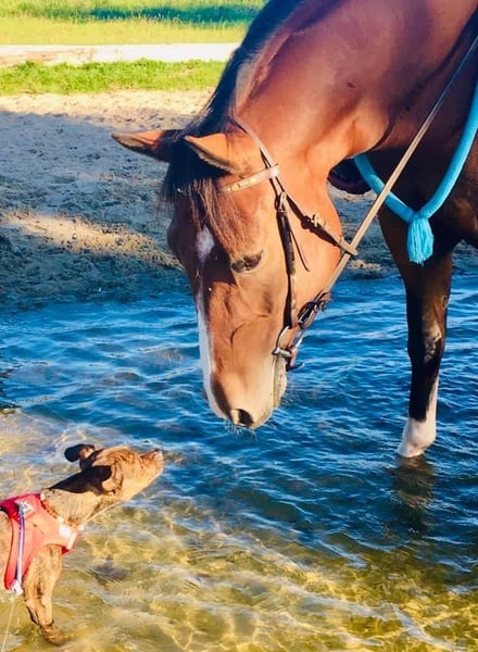 — Caballo Paint, castaño. Valiente y sano, yegua de 10 años para el jinete de western ambicioso. Mide aproximadamente 1,53 m, es fácil de cargar y de herrar, y también se comporta bien con el veterinario. Vive en un establo abierto. Ha recibido entrenamiento y clases de monta en la disciplina de Reining, pero ha sido montado principalmente de manera recreativa en pista y en el campo. Estoy disponible para hablar más en persona. Un buen hogar es más importante que el precio. Ascendencia en archivo adjunto.