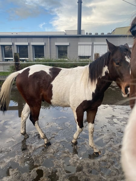 Te koop: een prachtige Paint Horse ruin, geboren in 2023. Met een verwachte schofthoogte van 152 cm en zijn opvallende Tobiano-vachtpatroon in alle kleuren is hij een echte blikvanger. Van hoofd tot staart is de lieve Rudi een echt hartendief. Deze getalenteerde ruin is uitstekend geschikt voor de discipline Reining en toont al veelbelovende kwaliteiten. Hij is vriendelijk in de omgang en heeft een rustig, evenwichtig karakter, wat hem een ideale partner maakt voor ruiters van alle ervaringsniveaus. Hij is ook goed te laden en hoefsmid-vriendelijk. Hij groeit op in een diervriendelijke omgeving met 24/7 weidegang in de zomer en in de winter de hele dag op de paddock en 's avonds op stal. Hij is uitstekend gesocialiseerd. De verkoop vindt plaats in goede handen die hem een liefdevol thuis kunnen bieden (graag ook ter plaatse op de stal). Door plotselinge beroepsveranderingen moet ik helaas van hem afzien. Ik zou het ook fijn vinden als een verzorging of ruiterbijdrage voor later misschien mogelijk zou zijn, afhankelijk van de locatie. Bij interesse of verdere vragen hoor ik graag van u!