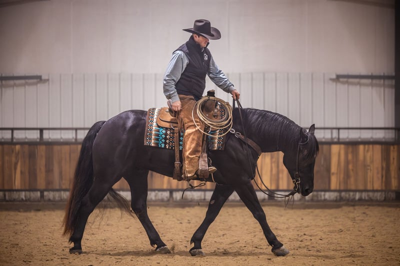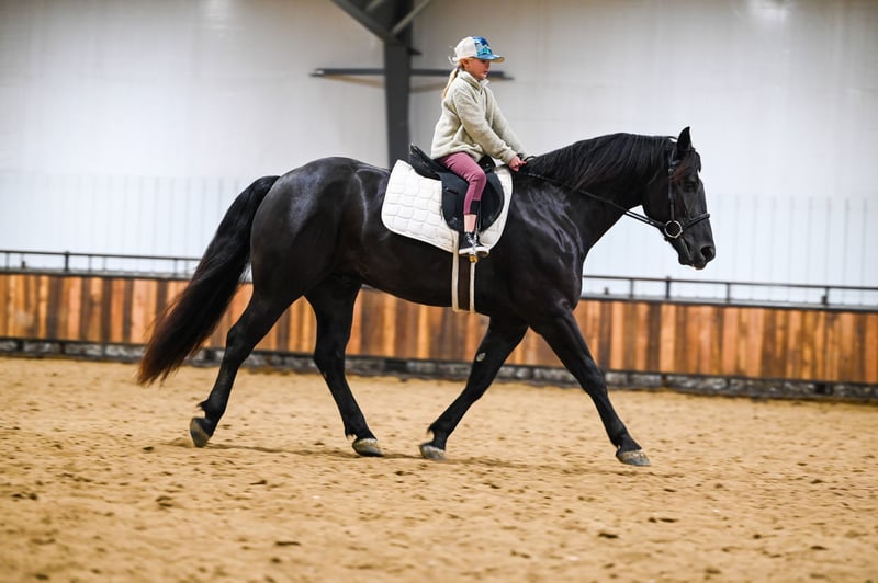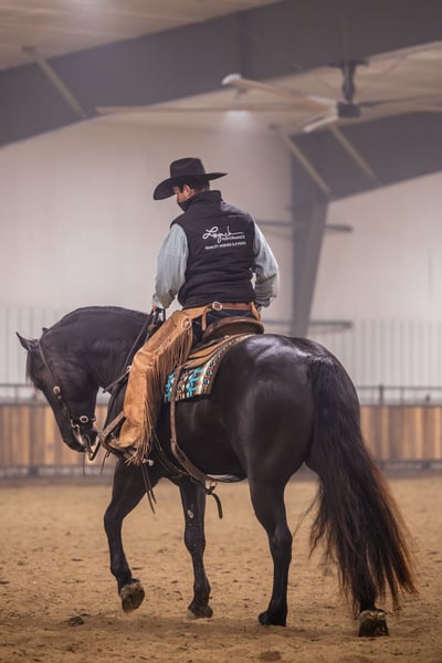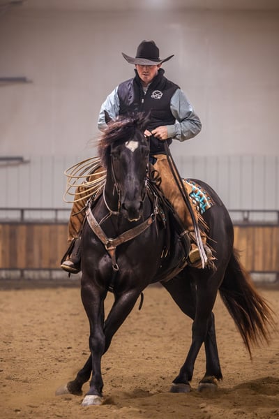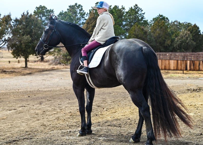 𝑳𝒚𝒏𝒄𝒉 𝐏𝐄𝐑𝐅𝐎𝐑𝐌𝐀𝐍𝐂𝐄 🔹𝑼𝑵𝑰𝑪𝑶𝑹𝑵 𝐂𝐋𝐀𝐒𝐒𝐈𝐂🔹 Happening now thru SATURDAY | MARCH 28th - Available EXCLUSIVELY on HorseBid's website! For more details and to register visit: www.Horsebid.com CONSIGNOR CONTACT: Lynch Performance, LLC 605-212-8917 LOCATION: Canistota, SD BREED: Percheron/Quarter Horse REGISTERED: No COLOR: Black HEIGHT: 15.3 AGE: 4 GENDER: Gelding Home raised, beautiful, and kind-hearted wrapped up in a large 15.3hh coal black package. “Duke” is the most sweet natured horse around. He has the soft, kind eye and the aim to please mind. Duke has a striking jaw dropping presence. People that come to our place cannot help but stop and take a second (and third) look at him. This big boy has a massive tail that reaches the ground, a perfect star on his forehead, and impeccable conformation. Duke is a gelding that is far beyond his years and always has been that way. He has a very mature mind and has wanted to be broke from the very beginning. Duke has been Jared’s personal, main mount to help with the ranch chores. If we need to go catch some cows, Duke gets the call. If we need to sort through stock, Duke gets the call. If we need to halter break some colts, Duke gets the call. This guy is big and strong and knows how to use himself. The chaos that ranch chores can bring is of no concern for him. They do not come better minded. Duke (Dukester, Dukess) sure is handy on the ranch, but he will really catch ones’ attention in the arena. This boy is a beautiful mover! He rides soft in the bridle and stays level headed. He can get his rear end in the ground and can turn around pretty good for a big boy! Man oh man does he ride fancy in english tack! Duke will be soft and responsive in the bridle and his body. We are so trustworthy with this guy that we let our little sixty pound niece ride him. If a steady trail mount is your jam, Duke will be your guy. He will take care of his rider and he is smooth no matter the terrain. Duke will cross creeks mindful of his steps or go right into the big deep water. This gelding has no issue riding out alone or in a group. With him being a bigger guy, we did train him to side-pass to any obstacle to make mounting a breeze. This is a genuine good boy that we are so proud of. We have had him his whole life and have all the confidence that he will be one to put a smile on your face every day.