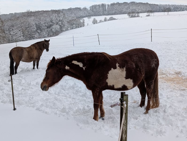 Verkaufe schweren Herzens meine sehr hübsche und liebe Pinto Stute. Sie ist fast ihr ganzes Leben lang bei mir, leider muss ich mich aus gesundheitlichen gründen von ihr trennen. Leider werde ich nicht mehr gesund und werde ihr leider nicht mehr gerecht. Ich möchte gerne einen Platz für sie in einem Offenstall oder bei ausreichender Bewegung eine Box mit Paddock. Auch war sie in all den Jahren nie krank. Sie ist sehr gerne in Gesellschaft mit anderen Pferden wo ihr Fellpflege mit einem Partner möglich ist. Sie hatte auch schon ein sehr hübsches Fohlen. Bei mehr Infos schreibt mir einfach, ich versuche alle Fragen zu beantworten.