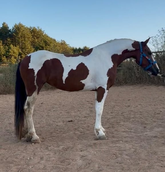 Stute, Tochter eines Pinto Barockpferdes und einer PRE-Stute. 1,57 m groß mit Stockmaß. Sie ist nicht geritten. Ein guter Zeitpunkt, um mit ihr zu beginnen. Sie besitzt einen CDE-Pass. Sehr ausdrucksstarke Stute mit guten Bewegungen. Kontakt: WhatsApp: +34 612 219 256 E-Mail: info.equsur@gmail.com