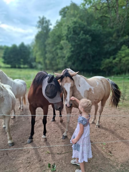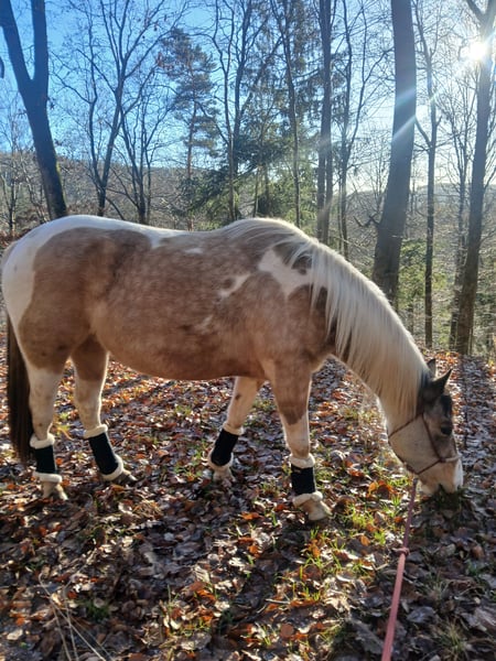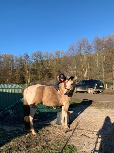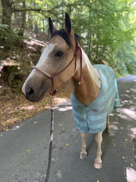 Ilana ist bei mir seit sie 7 Monate alt war, sie ist in einer kleinen Herde aufgewachsen. Leider muss ich mich von ihr trennen da ich mit meinem Wallach gezwungen bin umzuziehen da er mehrere Sehnenschäden hatte und ich mir das Einstallen von 3 Pferden nicht leisten kann. Noch dazu habe ich nämlich eine 30 Jährige Stute, die nun keine Zähne mehr hat und das Futter für sie allein schon ein Vermögen kostet. Es bricht mir das Herz, mich von Ilana tennen zu müssen, sie geht nur in allerbeste Hände mit Schutzvertrag und Vorkaufsrecht, ich möchte auf jeden Fall verhindern das sie zum Wanderpokal wird. Nun zu Ihr, Ilana ist eine Bildschöne Pinto+Painthorse Stute, Farbe (Falbchecke tricolor) sie kennt es mit und ohne anderen Pferde spazieren zu gehen, wobei es ihr mit Pferdegesellschaft leichter fällt. Sie kennt Freiarbeit, Bodenarbeit, Longieren, Stangenarbeit, Sattel und das Reitergewicht, wo sie immer sehr brav dabei ist. Sie ist ein Karakterpferd und sollte in erfahrene, liebevolle aber auch konsequente Hände. Zu viel Druck und Egoismus erzeugt bei ihr schnell gegendruck. Man muss sie kennenlernen und ihr auch Zeit geben. Ilana ist muting fremden Dingen gegenüber und sehr neugierig. Was soll ich sagen, für mich ist sie perfekt so wie sie ist. Bei interesse gern auch über WhatsApp, nur ernst gemeinte Anfragen.