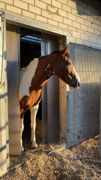 Verkaufsanzeige – Polnisches Warmblut (Stute), Jahrgang 2011 Zum Verkauf steht meine liebe Stute, ein polnisches Warmblut aus dem Jahr 2011 mit einem Stockmaß von ca. 1,59 m. Sie ist eine hübsche Braunscheckestute und besticht vor allem durch ihren unglaublich lieben und ausgeglichenen Charakter. Sie ist ein echtes Familienpferd: sehr menschenbezogen, kinderfreundlich und immer bemüht, alles richtig zu machen. Sie kennt den Hänger, ist brav im Gelände und arbeitet auch gerne auf dem Platz. Dressurarbeit ist ihr vertraut, außerdem springt sie sicher auf E-Niveau. Turniererfahrung hat sie nicht – sie wurde hauptsächlich als Freizeitpferd geritten. Durch ihr ruhiges Wesen eignet sie sich wunderbar für Freizeitreiter oder Familien, die ein verlässliches und liebevolles Pferd suchen. Leider muss ich mich aus privaten Gründen schweren Herzens von ihr trennen. Daher wird sie ausschließlich in gute und verantwortungsvolle Hände abgegeben. Bei ernsthaftem Interesse freue ich mich über eine Nachricht.