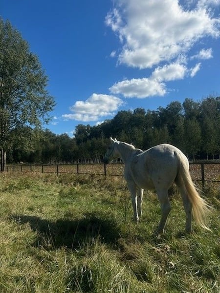 Sprzedam zaźrebioną w 06.2025 klacz doskonałym ogierem ujeżdżeniowym Fürsten-Look (stajnia ogierów Cichoń). Klacz chodząca do 2020 roku w sportach - ujeżdżenie do klasy C i powożenie (pary i czwórki). Od 2021 roku tylko ujeżdżenie (początkujący i średnio- zaawansowani). Od roku 2021 poszła też do hodowli. Dała 2 konie, obecnie to jest jej 3-cia ciąża. Klacz jest bardzo spokojna, dobrze ułożona, super wygodna do jazdy (jeździ się na niej jak na fotelu). Chodziła bez problemu sama w tereny. Obecnie stoi pod Siedlcami woj. mazowieckie (10 km).