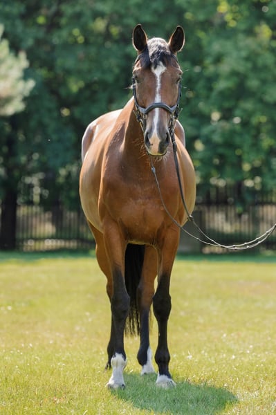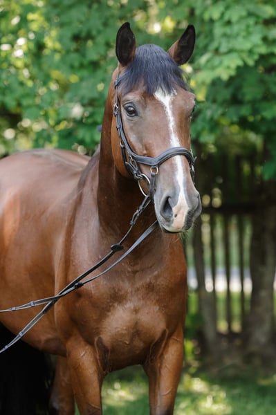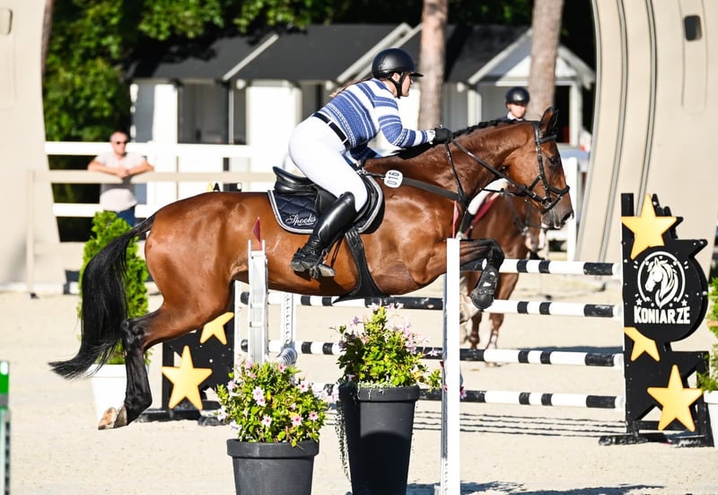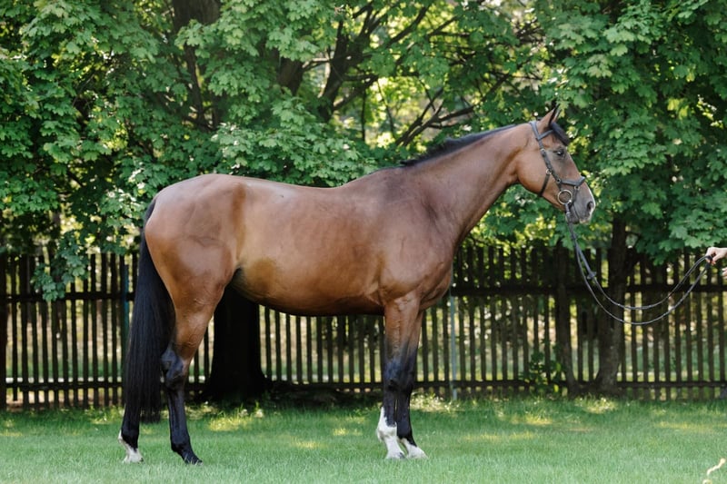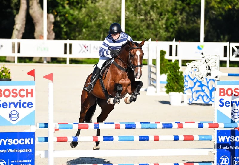 For sale, I offer a beautiful five-year-old mare. The mare is very talented and has great potential for further development in the disciplines of show jumping and eventing. She is attentive, eager to cooperate, and easy to handle. She goes out on trails both alone and with other horses. She loads well in the trailer.