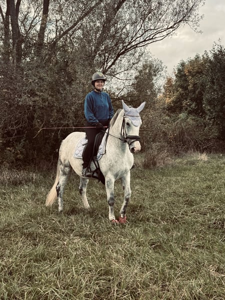 Schweren Herzens trenne ich mich von meiner Stute, da wir reiterlich leider nicht zueinander finden. Sie ist eine charakterstarke Stute und daher kein Anfängerpferd. Mit einem erfahrenen, konsequenten Reiter zeigt sie jedoch ihr Potenzial und arbeitet gut mit. Die tägliche Arbeit mit ihr macht sehr viel Spaß, und sie hat einen tollen, ehrlichen Charakter. Sie hat ein Stockmaß von 1,61m und ist 9 Jahre alt. Kleine Sprünge meistert sie zuverlässig dies konnte sie auf unserem Hofturnier unter Beweis stellen. Ausritte im Gelände macht sie alleine als auch mit anderen Pferden super mit. Sie kennt den Umgang mit Kindern und Hunden. Ich wünsche mir für sie einen passenden Platz mit erfahrener Bezugsperson, bei der sie weiter gefördert wird. Ihre Zähne wurden im November kontrolliert. Sie genießt regelmäßige Ostheopatie Behandlungen. Der Sattel kann mit erworben werden. Er wurde auch erst angepasst. Platz vor Preis! Bei ernsthaftem Interesse freue ich mich über eine Nachricht.