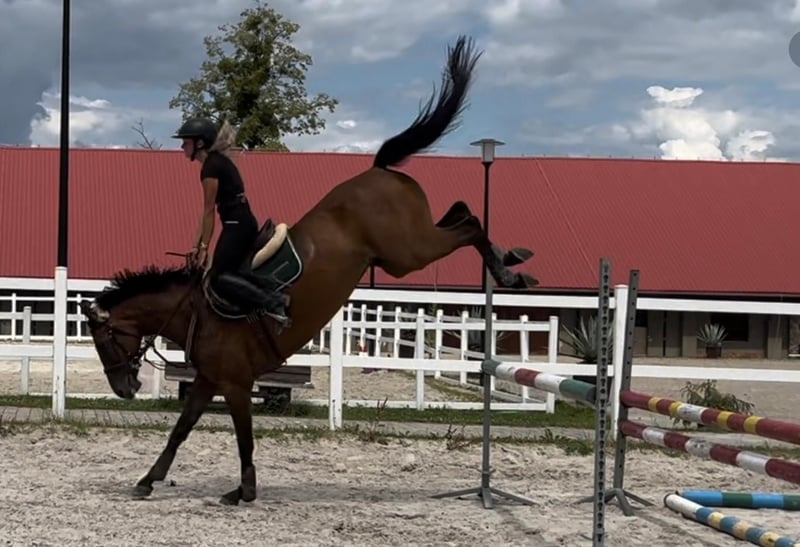 For sale: 9-year-old beautiful mare. Experienced horse, in regular professional training, catches the eye, pleasant to ride, carries softly. Mare with very good jumping technique, fast, agile, and precise in the show jumping arena, expressive movement. Healthy, not injured, in one hand for over 5 years, where she was ridden by a petite girl and teenagers at the silver level. Well-behaved in handling, with the farrier, veterinarian, all grooming procedures, and during transport. Horse only for experienced ambitious riders who enjoy horses with a spark ;) A vet check was done at the time of purchase over 5 years ago - exemplary. Only to loving private hands ❤️ Due to her sporting pedigree, she is also suitable for breeding. Horse available for viewing in Inwałd - Małopolskie Voivodeship.