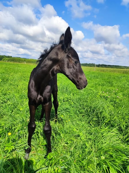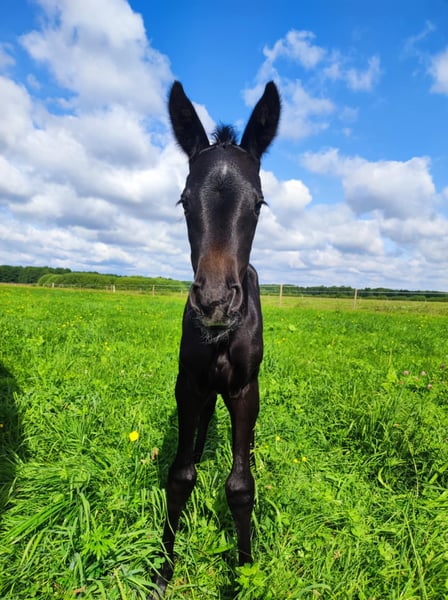 Na sprzedaż urodzona w tym roku klacz po ogierze Irbis (Sommerhit/Sandro Hit) od klaczy Banicja (Czumak/Bujak). Bagatela to klacz po rodzicach wpisanych do księgi głównej rasy wielkopolskiej, jest dzięki temu fajnym prospektem hodowlanym, ale także dzięki swojemu rodowodowi ujeżdżeniowym oraz skokowym. Oboje rodziców mają świetny, łagodny temperament, klacz od urodzenia jest bardzo kontaktowa - będzie super koniem dla kogoś, kto szuka towarzysza na lata.