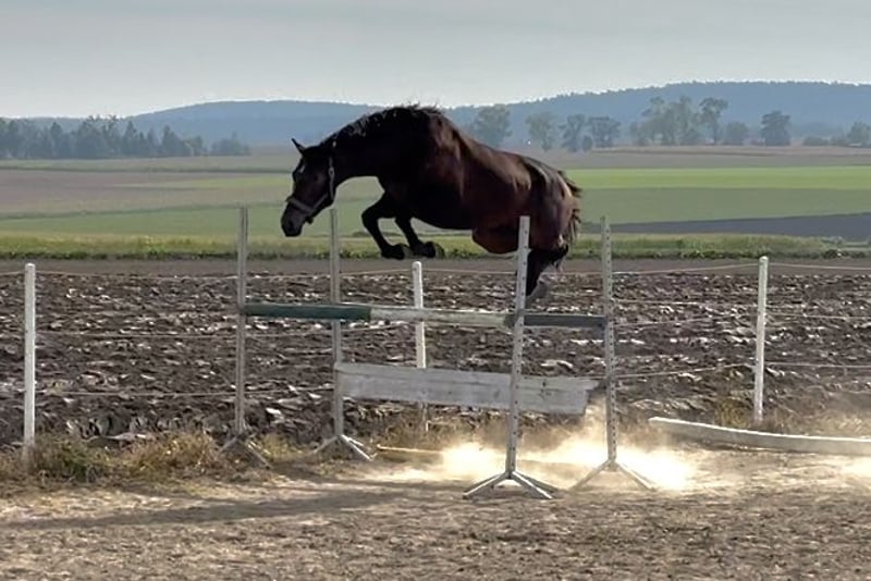 Sehr vielversprechender Wallach aus dem Jahr 2023. Das Pferd verfügt über einen kapitalen Bewegungsablauf, springt sehr gut im Korridor. Es ist korrekt, ausgeglichen auf den Beinen und wird groß werden. Derzeit ist es 1,64 m groß, das Ziel sind mindestens 1,70 m. Völlig unkompliziert im Umgang. Es tritt nicht, beißt nicht und kolkiert nicht. Brav beim Anbinden, Putzen, beim Schmied, Waschen und Transport. Bereits an das Führen an der Longe gewöhnt. Es liebt die Gesellschaft des Menschen, ist sehr menschenbezogen und eignet sich daher auch als Familienpferd. Ein sehr guter TUV vom 02.06.2025 liegt vor. Standort: 40 km von Poznań entfernt. Ein Tausch, Pacht, Preisverhandlungen oder Ratenzahlung sind nicht möglich.