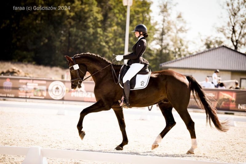 Gender: Gelding Date of Birth: 2018 (5 years old) Color: Dark Chestnut Breed: Oldenburg (OS) Warmblood Height: 17.4 hh Sire: Kaiser Karl Dam: Juree Ter Dieschoot Intended Use: - Dressage Training Level: - Level C Character and Temperament: - Suitable for an experienced rider - Hacks out in the terrain - Used to dogs - Calm and unshakable - No vices Competition Experience: - Regional - National Additional Features: - Well-behaved in transport - Used to farrier - Sound - Correct hooves - Trains well from the ground Description: For sale is a beautiful 7-year-old dressage gelding (Jack Sparrow P), incredibly charming and eye-catching. A horse suitable for everyone, calm, accustomed to transport, farrier (sound), water, and hacking out in the terrain. No vices, very ambitious. Currently turned out to pasture with other horses. Competing and winning in classes (L, P, N). In continuous training since March of this year, he has recently started performing flying changes. Very easily performs piaffe. At the last competitions in class N, scored 64-66%, earning podium positions each day. In one hand since age 4. Selling with a heavy heart due to going to university. Only to good and loving hands. More information and videos available via private message. Price negotiable