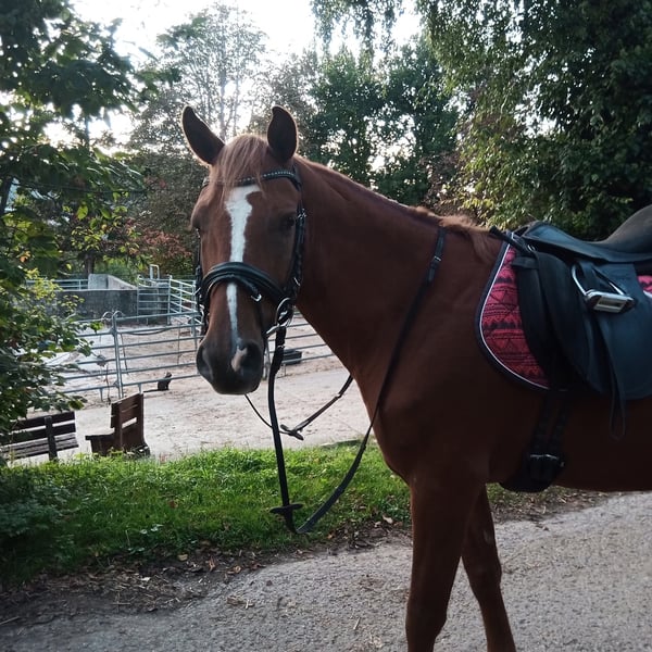 Caspari – 9-jähriger Wallach sucht für immer Zuhause Rasse: Edles Polnisches Halbblut Alter: 9 Jahre Stockmaß: ca. 1,51 m Barhuf, sehr gute Hufsubstanz Haltung: Box mit ganztägigem Auslauf, tagsüber in Wallachherde (funktioniert super) Charakter: - menschenbezogen & verschmust - ruhig im Kopf, absolut schrecksicher - verspielt & sozial in der Herde - braucht klare, konsequente Führung (v. a. beim Thema Futter) mit klaren Regeln ein absolut ehrlicher, kooperativer Partner - brav beim Schmied Ausbildung: - geritten auf E-Niveau - Schritt, Trab und Galopp in schöner Anlehnung - motiviert & lernwillig - leicht an der Hand und gut auf Stimme trainiert - kennt Boden- sowie Freiarbeit und hat Spaß daran Nicht für Anfänger oder Wiedereinsteiger Kein Verkauf an Händler oder Schulbetriebe Videos & Probereiten gerne auf Anfrage Weitere Infos gerne per PN oder im persönlichen Telefonat