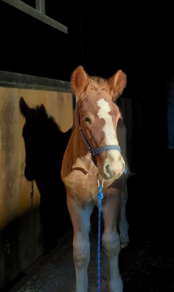 Urodzony 05.09.2025. Matka W-Lalka/Tajfun (dwa ostatnie zdjęcia), ojciec Posejdon/Lukas. Spokojny, podaje nogi, po pierwszej wizycie kowala, chodzi na uwiązie, jest wiązany i przyzwyczajany do dotyku na całym ciele (jest nieufny). Bardzo szybko się uczy. Odrobaczony. Możliwość kastracji za dopłatą po odsadzeniu. Odbiór w marcu, po ukończeniu 6 miesięcy. W przyszłości nada się do rekreacji, jako koń rodzinny, do zaprzegu i sesji zdjęciowych - matka ma długą i gęsta grzywę, duża szansa, że ją odziedziczył. Zależy mi, aby ogierek trafił w dobre ręce, nie ma mięso. Od urodzenia całe dnie na łące z rówieśnikami.