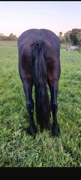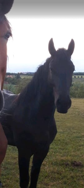 Il nostro puledro sorpresa Noel, nato a Natale, cerca una nuova casa. È nato il 24 dicembre 2022, quindi attualmente ha 2 anni e 9 mesi ed è già stallone. Purtroppo, sua madre, una splendida cavalla polacca di sangue Coldblood, non ci ha rivelato chi sia il suo padre. Data la sua apparenza e la sua linea superiore elegante, possiamo ipotizzare che potrebbe trattarsi di un cavallo Friese o di un'altra razza elegante simile. La madre ha un'altezza al garrese di circa 1,70 m, mentre lui misura attualmente circa 1,62 m. L'estate l'ha trascorsa insieme ad altri tre stalloni in paddock, ma lo scorso inverno è stato già lungi alcune volte al capannina con il cavezza.
