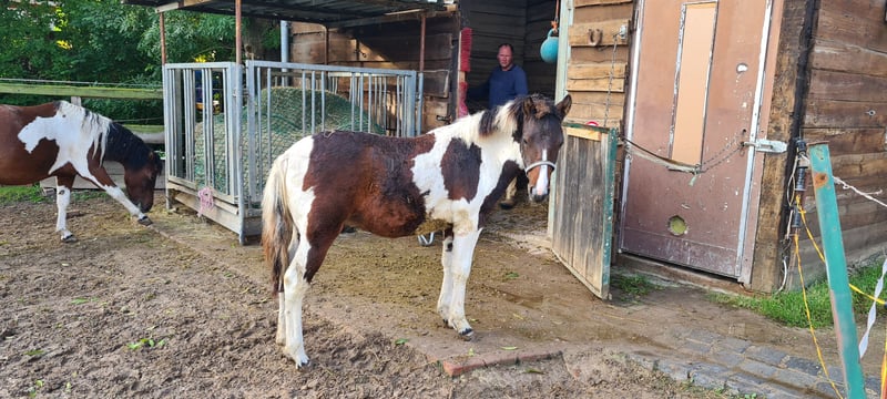 Verkaufen Hengst als Absetzer Braunschecke Kontakt zu Menschen und Kindern gewöhnt lässt sich problemlos führen Stand auf wechsenden Sommerkoppeln und kennt daher den Elektrozaun Derzeit steht er im Offenstall, kennt jedoch auch die Box.
