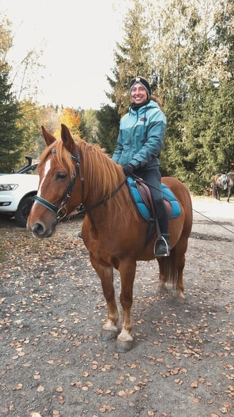 Polska klaczka wierzchowa Lina szuka kochającego domu. Lina zna pracę na placu treningowym i w terenie. Jest całkowicie odważna. Ma już doświadczenie w rajdach orientacyjnych, gdzie świetnie radzi sobie również w trailu. Lina jest kowalna i ładowalna. Jest delikatna w jeździe, dlatego nie jest to koń dla całkowitych początkujących. To typowa klaczka i czasami może być trochę zadziorna, jednak nie wykazuje złych nawyków, takich jak gryzienie czy uderzanie. W stadzie jest absolutnie zgodna.