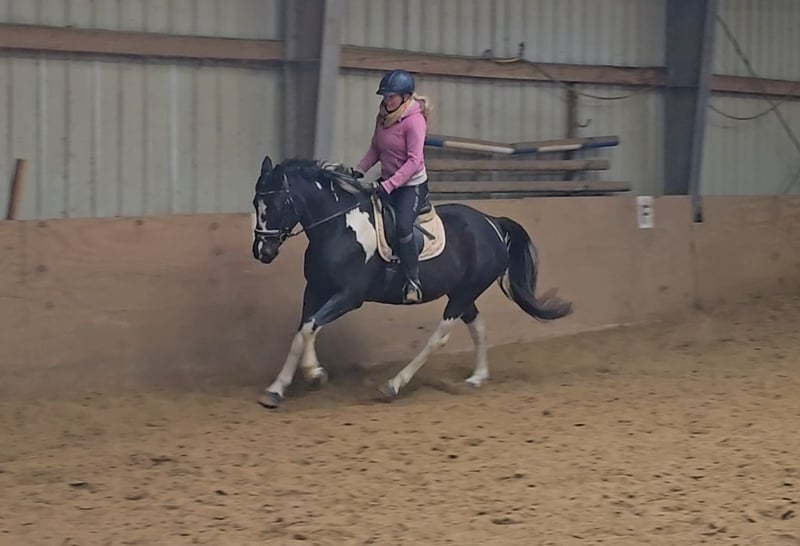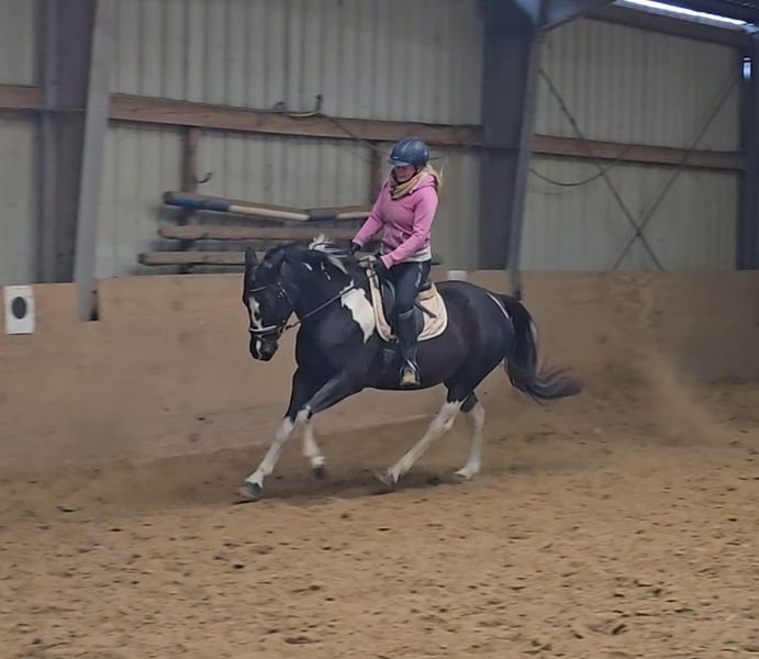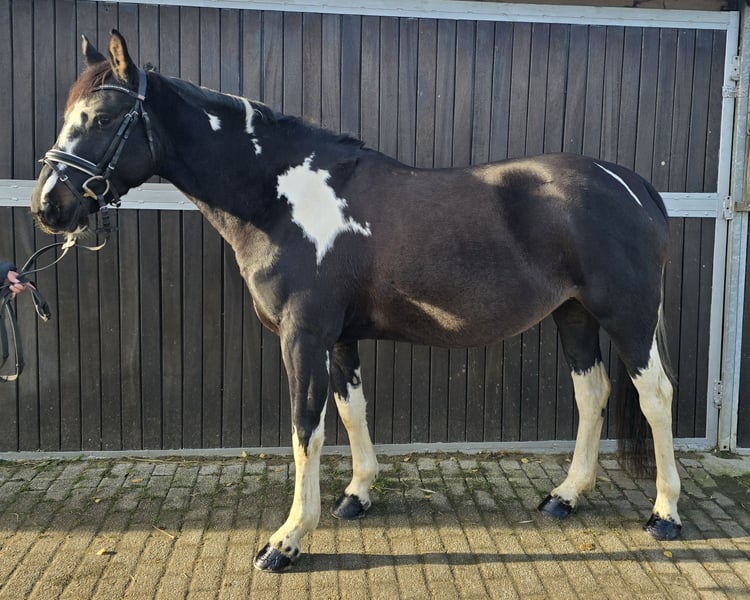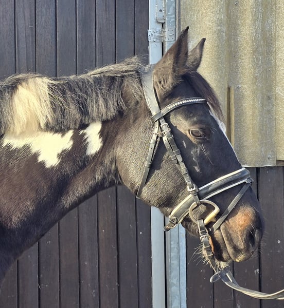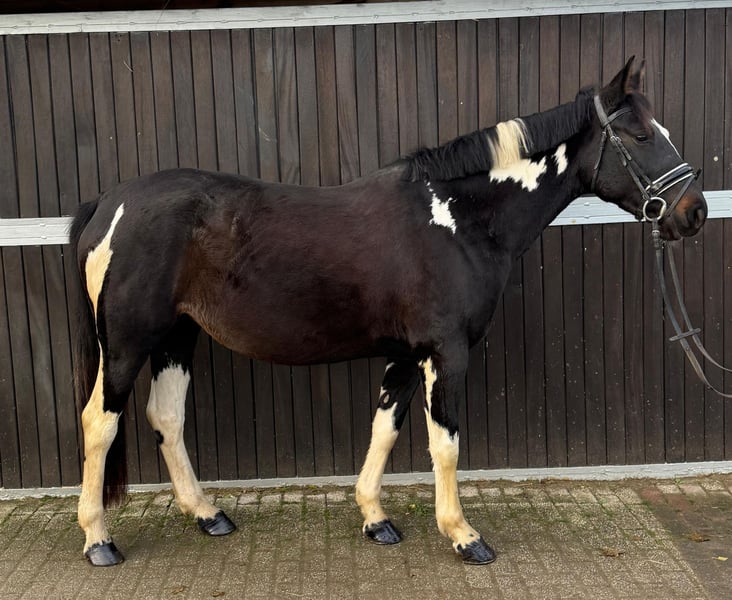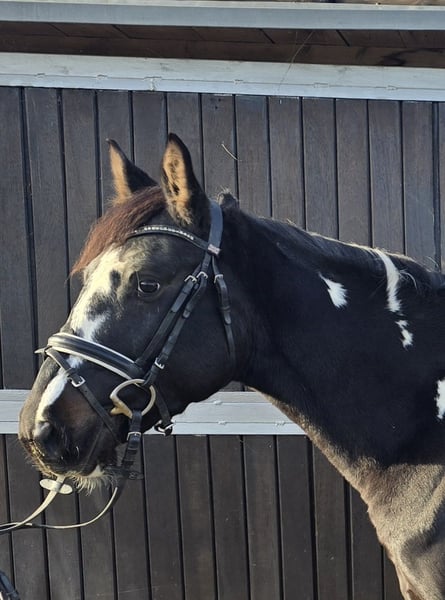 Please schedule an appointment by calling: +49 1556 1855942 WhatsApp contact is also welcome. Location: 45472 Mülheim Bonita is a 2021-born pinto mare who exudes a calm and relaxed demeanor. She is currently approximately 1.54 meters tall. In handling, she is as steady as a statue. She stands patiently during grooming, loves cuddling, and is a very sweet girl. The same applies under saddle: fearless, cool, and trainable. She has three good gaits that are very comfortable for the rider. Currently, she is being trained in dressage. She is accustomed to being ridden in the arena and has also been ridden by children, which she does very well. Therefore, she would also make a wonderful family pony. Suitable for riding lessons and even as a therapy pony. She has been healthy so far, dewormed, with fresh dental care, and has been seen by the farrier, doing an excellent job. Current videos are available and can be sent after initial contact. A pre-purchase exam can be arranged at the buyer’s expense. To help reduce the horse tourism, we charge €30 for the presentation and inspection of the horse. This fee also benefits the horses through osteopathy, veterinary care, chiropractic treatments, massages, solarium, muesli, carrots, and more.