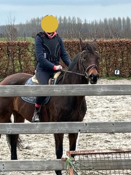 18 jarige lieve en betrouwbare merrie. Erg mensgericht, leeft goed in wisselend kuddeverband. Staat momenteel 7/7 buiten. Kan niet meer intensief bereden worden maar lichte recreatie of wandelingen zou ze nog heel fijn vinden, ze heeft nog een goede werklust. Kan ook als weidemaatje. Heel makkelijk hanteerbaar paard, braaf op transport en bij verzorging, ook door hoefsmid en dierenarts. Draagt geen ijzers. Respectvol voor de ruiter. Bokt of steigert niet. Liep voordien mee in groepslessen en verdraagt beginnende ruiter. Lichte vorm van zomereczeem. In orde met vaccinaties.
