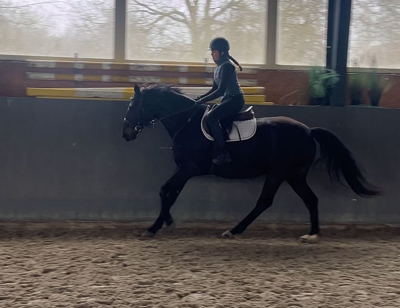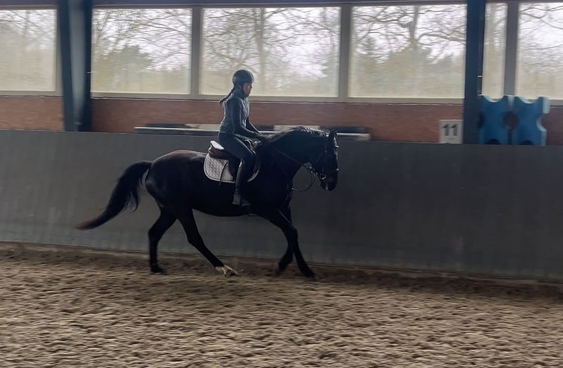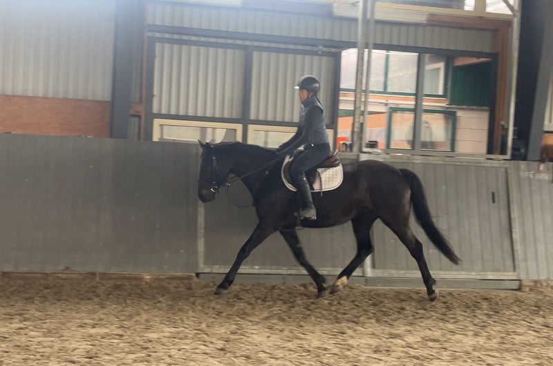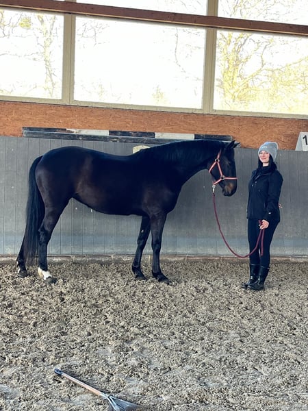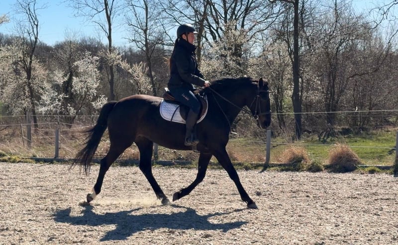 Excellent mare with top movement and high-quality jumping ability. The mare accepted the rider immediately and is currently under saddle. Great character ✅ Healthy – not lame. Strong, well-built physique, yet still light in movement 🥰 Currently approximately 16.0 hh, expected to grow to around 16.3 hh. The last picture shows the mother (M, trained in dressage and M** in jumping, has gone to breeding). The father, Opium, jumps 4.11 ft (150 cm) in the USA. More information, photos, or videos available via WhatsApp.