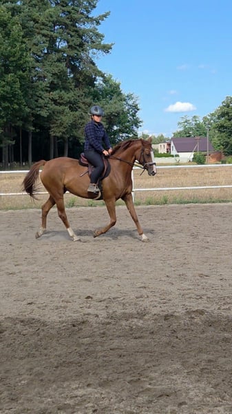 Eye-catching 6-year-old mare standing at 16.2 hh, with correct conformation, an excellent temperament, and strong sporting potential. She is a mare after foaling, a wonderful mother, and has been under saddle for two months. Suitable for an experienced rider. Branduria is a mare sired by Kaiser Karl out of a Turbud Quirinus mare. Kaiser Karl is an outstanding Oldenburg stallion with remarkable achievements and breeding qualities. In 2005, he passed his licensing test and was the winner of the Oldenburg Körung. In 2006, he became the champion of Lower Saxony in Rastede, and later also vice-champion of Germany in Warendorf. During the 30-day test, he achieved a high dressage index and excellent jumping scores. Kaiser Karl is among the top German stallions. Turbud Quirinus is a very good reproducer, producing numerous jumpers and finalists at the German Championships, including the three-time medalist Cyrkonia, who later competed at the GP level. For more information, please contact me by phone at +48 661 249 798.