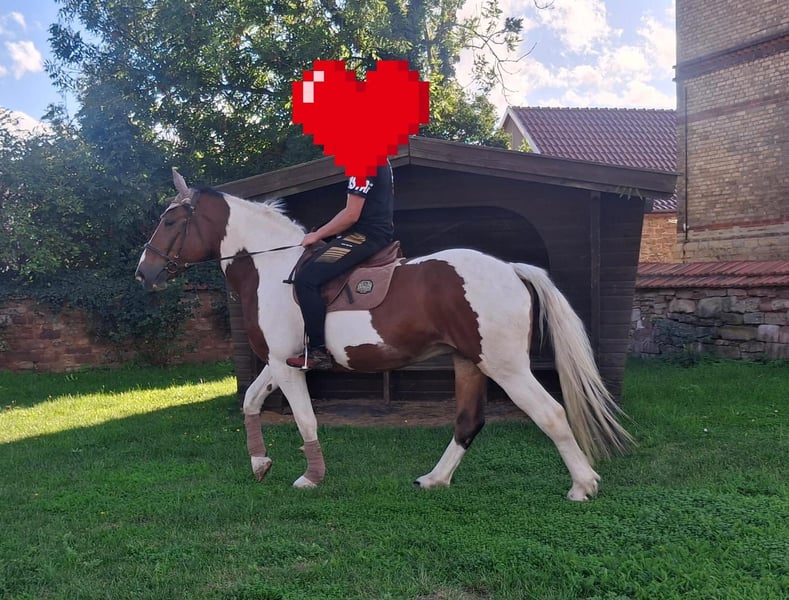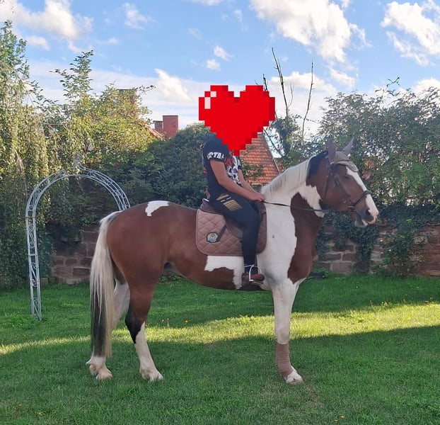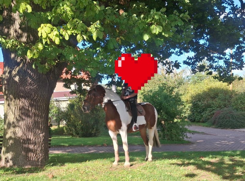 Leisurely ridden Pinto mix mare - 6 years - 1.65m She is a pretty mare with a friendly disposition. She is easy to ride, comfortable to sit on, and safe in the terrain. Familiar with English as well as Western riding. Used to trail riding and leisure rides. Also well-suited as a therapy horse, as she is clear-headed, calm, and relaxed. Shoeing and loading are no problem. If interested, please leave a message.