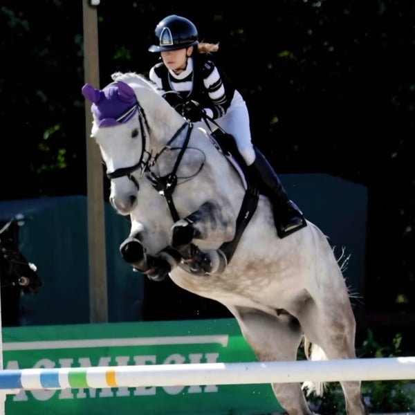 Beautiful eight-year-old frame mare for sport. Suitable for both show jumping and dressage, due to her beautiful movement. Excellent pedigree Number One x O-Bijou de L'ocean / Bijou Be. (166 cm tall) Calm and balanced. Currently in regular sports training, under the care of a physiotherapist and farrier. Currently ridden by a member of the National Children's Team. Current medalist of the Silesian Championships in the Junior category. She has taken the rider from competitions of 80cm to 120cm. Experienced in competition atmosphere, problem-free in transport and during grooming. Goes out on trails, is kept in a paddock. Healthy and never injured. Nice and calm character, eager to learn new things. Ideal for a child starting their adventure with horseback riding or as a first large horse after a pony. Of course, also suitable for an adult. Has an FEI passport, possibility of sale with a new, fitted equipe saddle. More information in a private message. 501 579 729 Welcome, location Częstochowa.