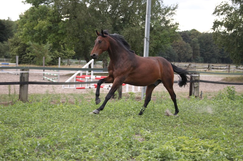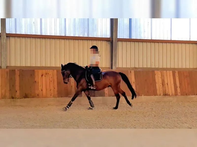 Zum Verkauf steht mein liebevoller 15 jähriger Wallach. Er soll ein liebevolles neues Zuhause bekommen, da ich ihm nicht mehr gerecht werden kann. Da er im Springen sowie in der Dressur noch ausreichend ungenutztes Potential hat, suche ich für ihn ein neues zu Hause, in dem er gefördert und gefordert werden kann. Als polnisches Warmblut gezogen, zeigen sich im Charakter und Statur, sehr starke Trakehner Eigenschaften. Besonders hervorzuheben ist sein schönes Exterieur, Ehrgeiz, Leistungsbereitschaft, sowie seine gute Einstellung in der täglichen Arbeit. Aktuell lernt er erste Lektionen wie Traversalen und Wechsel. Im Springen befindet er sich auf einem gehobenen A-Niveau. Ich wünsche mir für meinen geliebten Schatz einen Menschen, der in Ihm nicht nur das Turnierpferd sieht. Er muss nicht jeden Tag ausgiebig ausgepowert werden, er ist auch nach zwei Wochen nur Koppel noch genauso brav, ruhig und einfach zum Reiten. Er ist ein sehr sensibler, lieber und anhänglicher Wallach, der sich gerne am Menschen orientiert und jegliche Aufmerksamkeit genießt. Genügend Weidegang ist mir für ihn ebenfalls sehr wichtig. Bei uns steht er aktuell 8-10 Stunden auf der Weide. Alltägliche Dinge wie Putzen, Satteln, Schmied, Waschen, Traktoren, Hunde etc. sind für ihn gar kein Problem. Er kennt weiterhin Freispringen, reiten mit Halsring und Reitpad, Gelassenheitstraining und auch das Reiten ohne Sattel. Ärztliche Check-Ups in Form von Impfungen, Zahnkontrollen, Wurmkuren und Osteopathischen Behandlungen sind regelmäßig durchgeführt worden. Er ist seit 9 Jahren in meinem Besitz und immer gesund und fit. Keinerlei Anzeichen von Lahmen, Husten, Augenentzündung etc.! Bitte keine Händleranfragen! Da ich kein Interesse an Reittourismus habe und vor allem auch nur ernstgemeinte Anfragen wünsche, nehme ich für jedes Probereiten 20EUR. Diese werden bei Kauf wieder gutgeschrieben. Er wird nur in beste Hände und in eine artgerechte Haltung abgegeben! Das Equipment kann gegen Aufpreis mit übernommen werden.