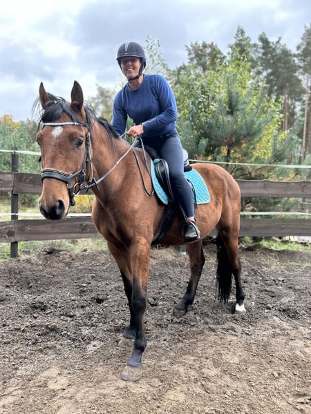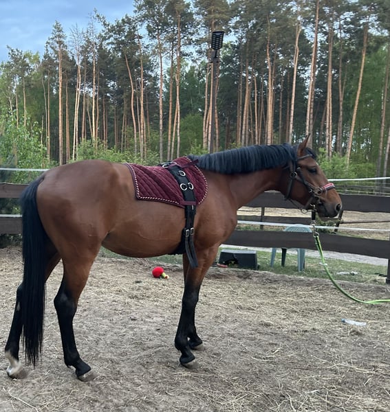 A clever horse that learns quickly. Well-behaved, easy to handle, and cooperative with the farrier (stands perfectly for trimming and shoeing).