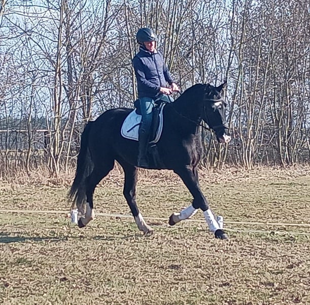 **Faworyt – MG**, ein vierjähriger Dressurwallach, abstammend von dem im Dressursport sehr bekannten und geschätzten Hengst Secret. Die Mutter von Faworyt – MG ist die Stute Falena, korrekt gebaut und mit 82 Punkten bewertet, Gewinnerin des 3. Platzes auf der Zuchttierausstellung Polagra 2013. Neben Faworyt – MG brachte Falena unter anderem die im Dressursport sehr erfolgreiche Stute Fibrina von Believe In Me hervor. Die Stute Fibrina gewann zweimal die Polnischen Meisterschaften der Jungen Pferde – sowohl bei den Fünfjährigen im Jahr 2023 als auch bei den Sechsjährigen im Jahr 2024. Ebenfalls im Jahr 2024 vertrat sie Polen bei den Weltmeisterschaften der Jungen Dressurpferde im niederländischen Ermelo. In diesem Jahr gewann sie zudem die Goldmedaille im Polnischen Hallenpokal im Dressurreiten. In die Fußstapfen ihrer erfolgreichen Schwester tritt ihr jüngerer Bruder, ein weiterer Nachkomme von Falena – der Hengst Free Bird – MG, der bei den Polnischen Meisterschaften der Jungen Pferde 2024 in der Kategorie der vierjährigen Pferde den 3. Platz belegte. Auch Faworyt – MG kann bereits einen ersten Erfolg vorweisen: den 2. Platz beim Niederschlesischen Nutzungschampionat für edle Pferderassen. Neben seiner Schönheit und seinem beeindruckenden Exterieur (174 cm) zeichnet sich Faworyt durch einen außergewöhnlichen Charakter aus: Er ist sehr rittig, angenehm zu sitzen, kooperativ und menschenbezogen. In jeder Situation bleibt er ruhig und gelassen, lässt sich durch nichts aus der Ruhe bringen. Gesund, Röntgenbilder vorhanden und einsehbar. Ein hervorragendes Pferd für jemanden, der ein sicheres Pferd sucht, um sich gemeinsam weiterzuentwickeln und die nächsten Stufen der Dressurkarriere zu erreichen. Transport möglich sowie eine zweitägige Probe am Bestimmungsort.