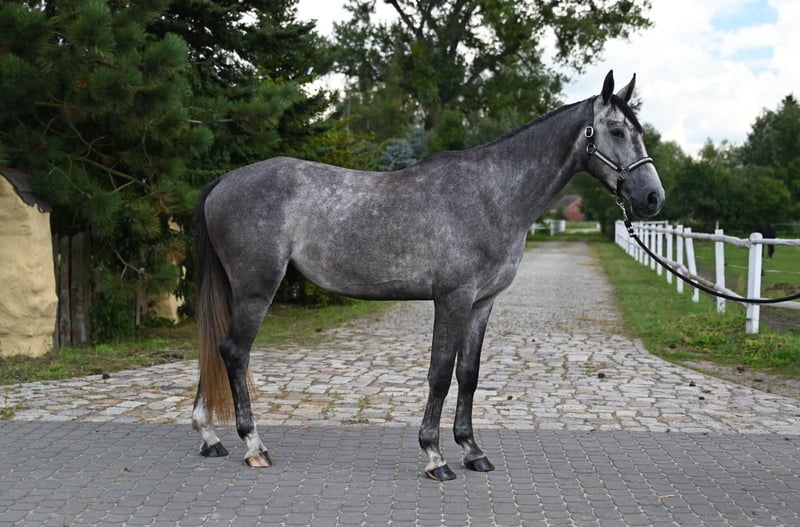 Lovely young gelding from top of the top bloodlines is looking for new good home. Tall, correct built with perfect legs, good hooves. Very good 3 gaits, especcialy good gallop. Erdon is a very nice and easy to handle horse, he has very good calm and friendly character. His world-class origins make him an outstanding prospect for major sport. He has very big potential, perfect jumping style. At least 10 x siblings compete level 160 cm 5 x level 150 cm 33 x level 140/145 cm He grew up in large meadows with a group of other youngsters. He had time to mature and grow healthily. Absolutly no vices or bad behavours, friendly to other horses. Everyday on big paddocks. Currently 173 cm, final ca. 175 cm Slowly started his training. So far he knows the saddle and the rider. The price will increase with training level. He has recent CLEAR X RAYS (7/2025) 100 % healthy Vaccinated, devormed up to date. Located 50 km from PL/D border. Videos and more info WhatsApp + 48 513 179 245 Transport can be arranged .