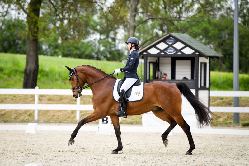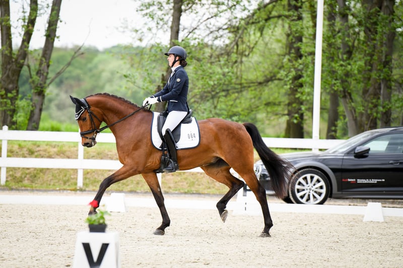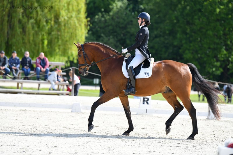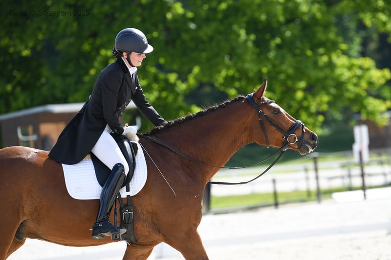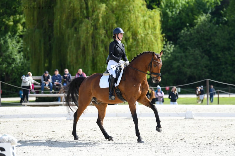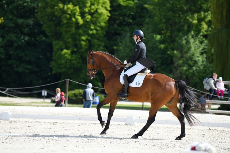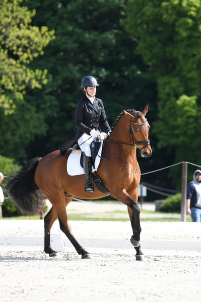 For sale: 7-year-old gelding, trained up to class C - documented performances at the level of 65-66% with potential for much more. 3rd place in MPMK - 5-year-olds. The horse is shod and used to being in a stable, accustomed to all grooming procedures, and under constant care of a physiotherapist. Gender: Gelding Date of birth: 2018 (7 years) Color: Bay Breed: SP (Thoroughbred Half-blood) Height: 173 cm Sire: Fürstentraum by Furst Heinrich Dam: Kofeina by Weltstein For more information, please contact me at: 534901693.