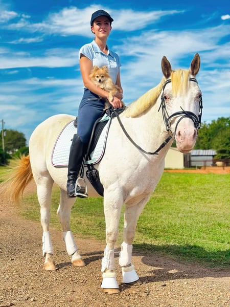 ONLINE AUCTION Place your bids at www.PlatinumEquineAuction.com Starting Bid $3500 Auction ends January 5th, 2024 Need a new saddle? Check out White Rock Saddles on our website or Facebook! Standing at 14 hands, and a 2014 model, Bullet is a versatile and striking gelding with a white coat, Appaloosa splashes, and a unique half-blue eye. With his thick build and solid bone structure, he’s as sturdy as he is beautiful. Bullet is at the prime age of seven and ready to go on to his forever home. He is a fancy broke, willing, and talented gelding. Bullet is a true all-rounder, excelling in English, Western, trail riding, bareback, and even bridle less riding. He’s beginner-friendly, making him the perfect mount for riders of all levels. Whether you’re looking for a safe, gentle partner for a child or an adaptable pony for a seasoned rider, Bullet rises to the occasion. He has Been exposed to Balls, tarps and flags and never gets spooked, no matter what we exposed him to. He’s traffic-safe, parade-proven, showcasing his calm demeanor and reliability in any situation. He has seen countless miles out on the roads, through town, pastures or trails and loads of arena work. He does it all well and has been enjoyed by everyone who has ridden him. Very easy and uncomplicated ride. He has a very trainable mind and loves to work. He stays the same no matter if you ride him daily or once a month. This “in-your-pocket” gelding has a sweet, friendly personality and is always the first to greet you at the gate. Bullet loves the attention and loves being around you. He is kind and respectful of your space on the ground, but will follow you like a puppy simply because he wants to be near you. He is the best of both worlds, a best friend and super talented ride. He thrives on attention and connection, making him an excellent family companion. He is very smooth, level headed, great on his feet and can handle any terrain. He gets along well with other horses and is clean and quiet in the stall. Bullet is sound, up-to-date on dental care, vaccinations, and worming, with his hooves freshly trimmed a couple of weeks ago. Ties, cross ties, bathes, and is great for the vet and farrier. Wonderful in a stall and acts like a seasoned pro in new environments. He is an absolute joy to have. He requires no maintenance and is ready to move into his next home without any hassle. Don’t miss out on this one-of-a-kind gelding—Bullet is sure to steal your heart! Contact Julia Gonzales 430-318-8474 Located in Texarkana, TX. ONLINE AUCTION Place your bids at www.PlatinumEquineAuction.com Starting Bid $3500 Auction ends January 5th, 2024 Need a new saddle? Check out White Rock Saddles on our website or Facebook!