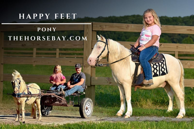 OPEN BIDDING ON THEHORSEBAY,COM. SALE ENDS ON 12/18. More information is available on the website, including an UTD vet inspection, Coggins, video, images, and the owner's contact information to ask questions, request information, or make arrangements to come to visit. Happy Feet is a very beautiful and unique champagne and white spotted pony. He stands 38 inches tall and is an 11-year-old gelding. Happy Feet has been around for the past two years. We owned him for about a year; then, he went to a friend of ours for their children. Once their children outgrew him, we got him back and have had him since. Now, our little girl is outgrowing him, and we would love to find the perfect home for some little boy or girl to love this amazing little man. Happy Feet has a long list of skills and experience. He is an excellent driving and trail pony; he’s been taken on camping trips, cattle drives, and horse shows, and he is an all-around pony who has been there and done that and seen it all. He has been a beloved member of our family for quite some time and is a joy to have around. Happy Feet is friendly and gentle, personable and loving. He has a sweet, humble attitude and a pleasing disposition. Happy Feet has been driven countless miles and is very experienced. He will walk and trot as you ask him to. He doesn’t mind vehicles passing him and is completely traffic-safe. He’s been driven to town many times as well. Happy Feet is also an excellent trail pony. He will cross logs and ditches and go through mud. He will easily go up and down steep hills and through creeks and streams. Our little girl has ridden him many miles on the trail, and he doesn’t mind leading or following. He will also ride out alone as our girl has taken him alone on the farm. He is willing and eager to please. We’ve also taken him on weeklong camping trips, and we love having him around at home and on the road! He has an excellent walk, trot, and lope. He will do all three gaits very easily and at your command. We’ve also taken Happy Feet on a large-scale cattle roundup where he helped move, sort, and work over 300 head of cattle. He is no stranger to ranch work; even as a pony, he is a good helping hand! He is confident to do even a big horse’s job. Happy Feet has attended many horse shows with us, where our children have shown him in riding and driving classes. He is a ball of fun! He doesn’t mind the noise, lights, and commotion at the horse shows or anywhere else. We’ve also taken him to church and given pony rides and wagon rides with him. All the children love him! Happy Feet has been exposed to wildlife and even squirrel hunting! He is used to the dogs, goats, and cats that run around the barn. He’s been ridden bareback as well, and our girl loves to climb on him and slide off. Happy Feet gets along well with other horses and ponies. He is easy to catch and super gentle to handle. He stands tied patiently and loads and hauls wonderfully. Our girl has spent a lot of time grooming, picking up his feet, and braiding his mane and tail. He truly has such a sweet nature and a willing attitude. Happy Feet is the perfect pony for a kid ready to move up from their first lead line pony to one they can take on the trail, trot, and lope with, and take up that next level of riding. Happy Feet is not your typical pony. He is a little gentleman who has been a great addition to our family these past few years. As our girl outgrows him, we would love to see another little boy or girl get to love him as we have. Watch our full YouTube video to see all this and more for yourself. Feel free to call with any questions or to schedule a visit with Happy Feet! Shipping can be arranged, and we can keep him until Christmas if needed. We would love for you to come check him out!