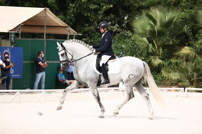 Vaticano de Vara is a consistently traditionally bred Cartujano from the famous Yeguada Hermanos Vara breeding program. Out of award-winning lines, successfully presented and evaluated. Qualified for the World Championships of the Spanish Horse SICAB. Strong in character, honest, full of substance and highly motivated. Vaticano is particularly talented in dressage and working equitation, and is also adept at jumping. Having a stallion like this in Germany is a great breeding asset.