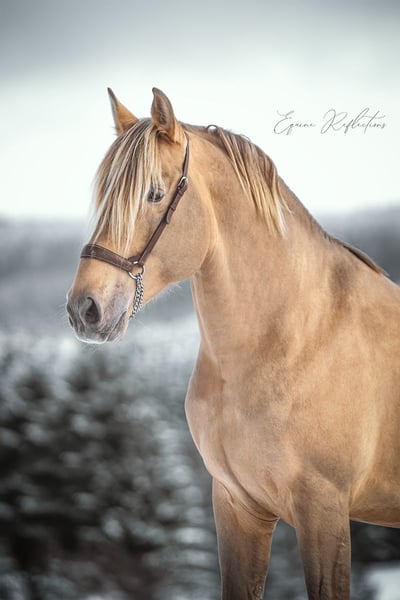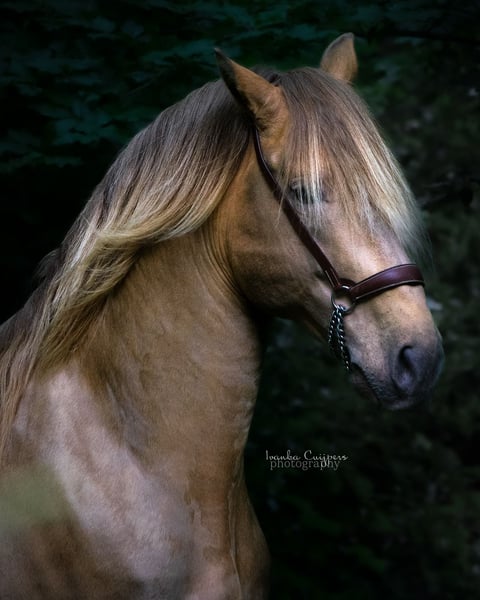Con gran tristeza nos planteamos encontrar un nuevo hogar para Maestrante. Esta decisión no ha sido fácil, pero varias razones nos empujan en esta dirección. Ya tenemos varias potras de él, varias yeguas preñadas por él para 2025, así como una reserva de semen congelado. Además, Maestrante es un caballo al que le encanta trabajar y recibir atención, necesidades que a veces me cuesta satisfacer por falta de tiempo. Merece ser el centro de atención de alguien que pueda ocuparse plenamente de él, mientras que para nosotros, podría permitirnos descubrir otra joya rara. No ocultaré que estoy buscando un sucesor excepcional para él. Maestrante, que mide 1,71 m, transmite a sus potros una estructura ósea robusta y una gran envergadura. Además de sus cualidades físicas y morfológicas que le predisponen para la doma, destaca por su temperamento fácil y generoso en todas las circunstancias. Ha participado dos veces en el Concurso Central Europeo de la ANCCE, obteniendo una medalla de bronce en 2022 en la categoría de sementales de más de 7 años, y ganando una medalla de oro en 2023 en funcionalidad (prueba montada para sementales de más de 7 años). Maestrante ha sido testado genéticamente por su color, con un resultado de ggEEAaPrlPrl, doble perla sobre base bayo. Se le hicieron radiografías a los 2 y 5 años, y no tiene problemas de OCD ni de navicular. También ha sido testado libre de Piro. Tenga en cuenta: Maestrante no es absolutamente necesario dejar y podría quedarse con nosotros. VanouAll Dressage está cuidando muy bien de él por ahora, y puedo seguir utilizándolo en nuestro programa de cría. Por lo tanto, el precio de Maestrante refleja la calidad de este caballo.