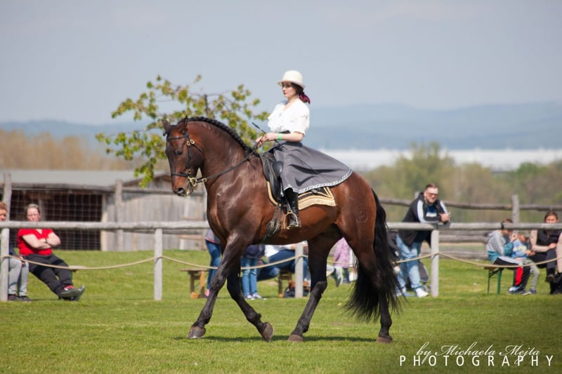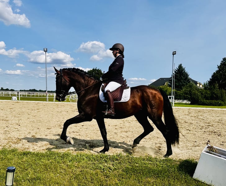 Dieser außergewöhnliche P.R.E.-Hengst, geboren 2012, beeindruckt durch seine wunderschöne Erscheinung, seine Ausstrahlung und seine barocke Eleganz. Mit einem Stockmaß von 1,69 m vereint er kraftvolle Präsenz mit sportlicher Eleganz – ein echter Blickfang in jeder Hinsicht. Aus einer Top-Linie mit exzellenter Abstammung stammend und selbstverständlich gekört, ist er nicht nur im Sport oder Shows, sondern auch für die Zucht hochinteressant. Seine vollen ANCCE-Papiere unterstreichen seine Qualität und Herkunft. Unter dem Sattel zeigt er sich stets konzentriert und leistungsbereit. Der Hengst ist Show- & turniererfahren, dressurmäßig auf L-Niveau, A siegreich und platziert. Er überzeugt mit einem ausdrucksstarken Gangbild, sowie seiner einzigartigen Erscheinung. In jeder Situation absolut verlässlich. Im Umgang präsentiert er sich charakterstark, verlässlich und unerschrocken – ein echter Gentleman, der Vertrauen schenkt und mit Gelassenheit glänzt. Ein Pferd, das sowohl im Viereck als auch bei schönen Ausritten durch Souveränität und Herz besticht. ✨ Steckbrief: • Rasse: P.R.E. – Pura Raza Española • Geboren: 2012 • Geschlecht: Hengst, gekört • Stockmaß: 1,69 m • Papiere: volle ANCCE-Papiere • Abstammung: Top Linie, zuchtgeeignet • Ausbildungsstand: Dressur L, A platziert und siegreich • Charakter: verlässlich, unerschrocken, charakterstark Ein Hengst mit Format, Charme und Veranlagung – für Reiter und Züchter, die das Besondere suchen. Kann vor Auszug, auf Wunsch, gelegt werden.