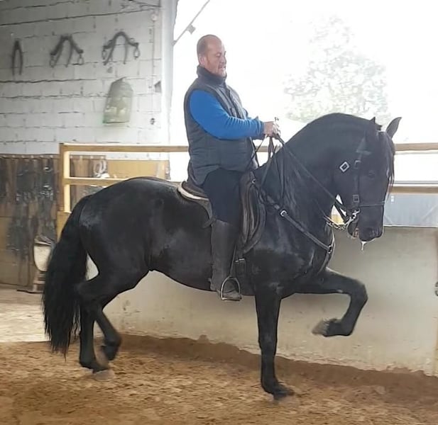 he horse that has it all: safety, show and family Some horses are more than just mounts: they become true members of the family. beautiful black, drawn up in high school, is one of those rare horses capable of dazzling in a show while offering pleasure and serenity to the little ones. He spent years performing in exhibitions, surrounded by lights, applause and large crowds, so much so that nothing scares him. Accustomed to traveling, discovering new places and evolving among horses and spectators, he remains imperturbable in all circumstances. An invaluable asset, whether for equestrian events or for a family looking for a horse in which they have total confidence. But what makes him truly exceptional is his character. He is so nice and easy to assemble that even children can enjoy him safelyAlways willing, always serene, he offers an immediate feeling of comfort and confidence. If you are looking for a horse reliable, spectacular and with a big heart, this black high school horse is an ideal choice. Whether shining in a show or sharing wonderful moments with the family, his nobility and experience make him a horse that is simply incomparable.✨ At IberHorse, we select horses with a story and a soul. If you think this one could be yours, let's talk. --------------------------------------------------------------- This horse has been selected by IberHorse.com after passing our rigorous health, behavior, and training tests. Discover more photos and videos by searching its name in our catalog: iberhorse.com/catalogue/ At IberHorse, we know that a horse is more than just a purchase – it’s a lifelong companion. That’s why we offer you: ✅ A wide selection of carefully chosen horses. ✅ A fast and stress-free acquisition process. ✅ Professional and personalized support before, during, and after your purchase. ✅ A full-service experience, including veterinary checks and international transport. Trust our 13 years of experience and find your ideal horse with IberHorse!