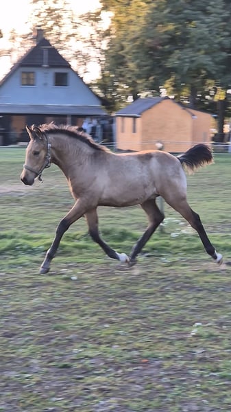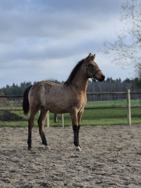 Elegant Buckskin PRE Stallion Available for Sale Discover the beauty and grace of this exceptional PRE stallion, born in 2025. This young colt boasts a stunning buckskin coat that shines with vitality and character. Bred for dressage, he exhibits natural athleticism, suppleness, and a promising future in the arena. This distinguished stallion combines classic PRE elegance with a modern athletic build, making him an excellent choice for riders seeking a talented dressage partner. His calm demeanor and impressive conformation reflect the quality of his lineage and training. Ideal for riders aiming to develop a top-level dressage horse or a promising breeding prospect, this PRE stallion is ready to embark on his journey with a dedicated owner. For more information and to arrange a viewing, please contact us.