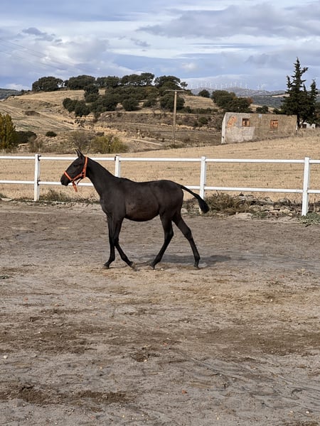 Potro PRE, inmejorables orígenes, hijo directo de Dormilon XLI un caballo cerrado de Miura, su madre es hija directa de Italo De la Vega, un caballo que fue campeón del mundo en Sicab Súper noble