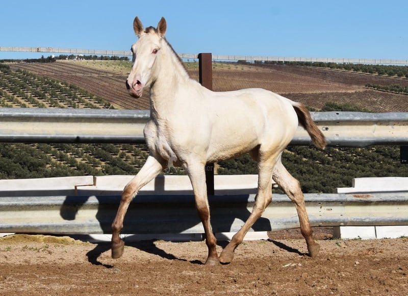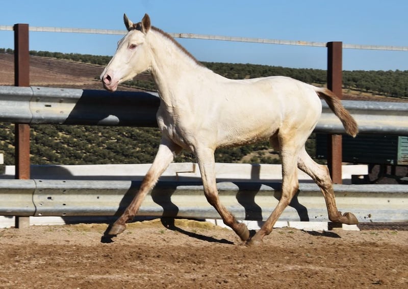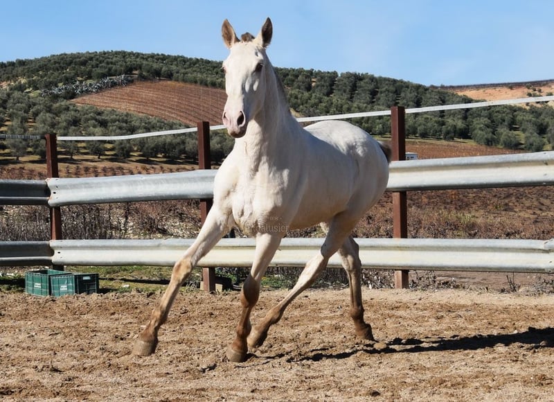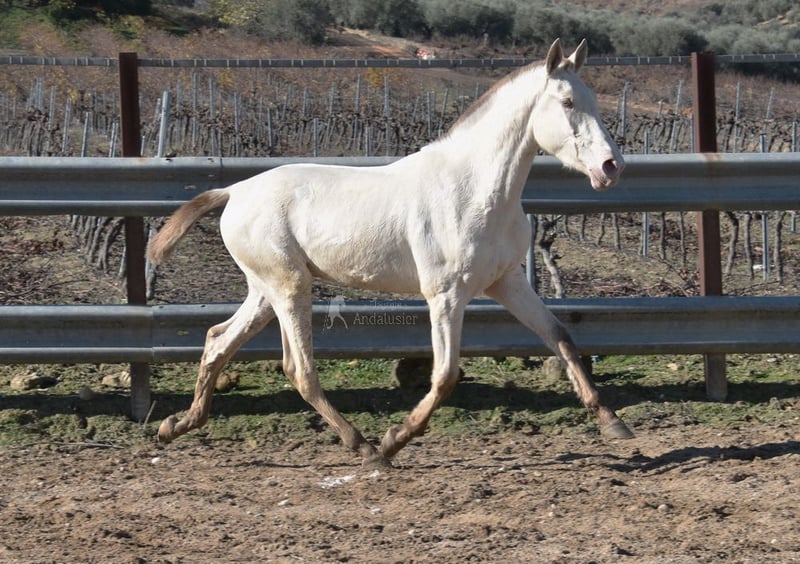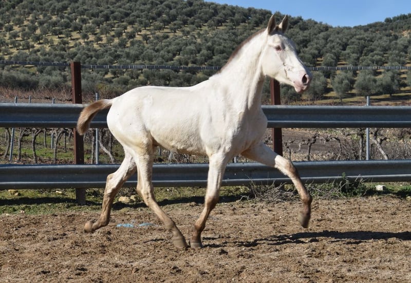Gentle, calm temperament, curious, people-oriented, rough, outdoor with other young stallions, tall, baroque build, good movements, unique color, Bayo Perla with PRE registration, has good X-rays. Pedigree: Paco Marti, Escalera, Antares, La Aldara. www.elegante-andalusier.com