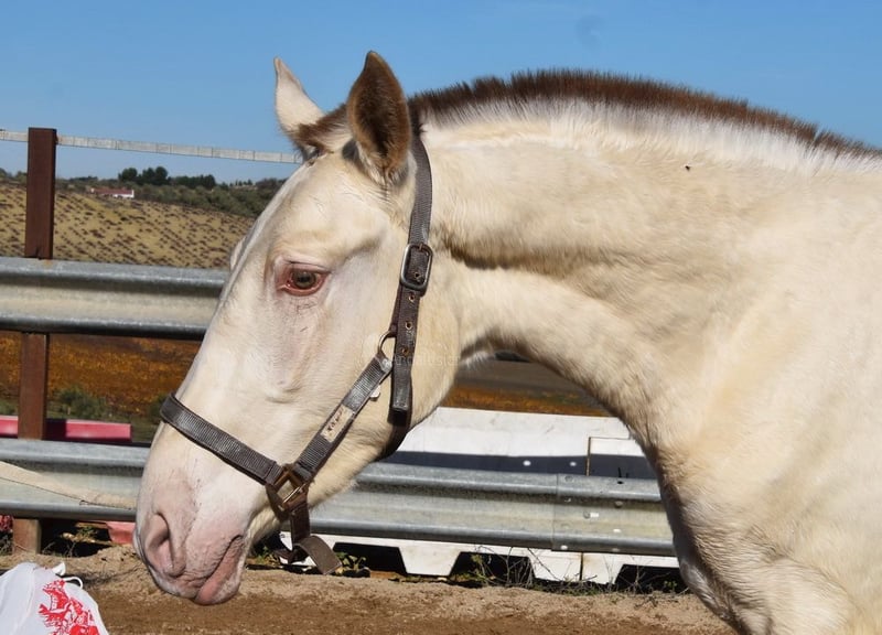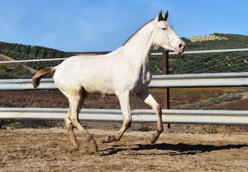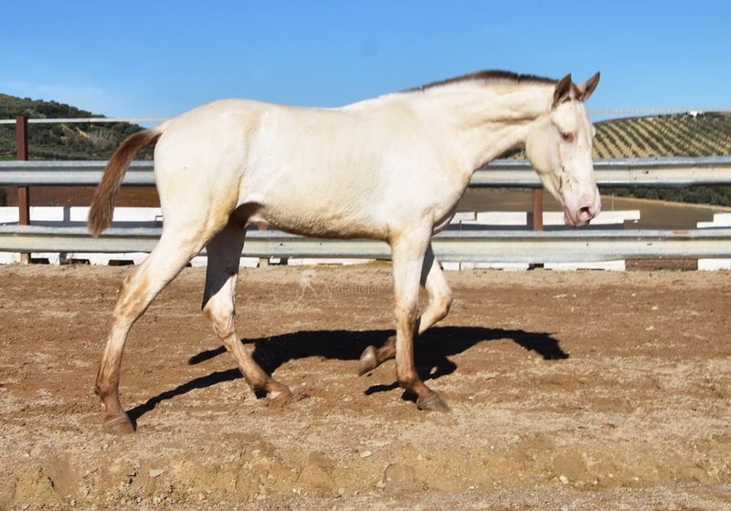 Caractère doux et calme, curieux, très proche des humains, un peu sauvage. Il est en paddock avec d’autres jeunes hongres. Grand, de style baroque, doté de bonnes allures. Couleur spéciale : Bayo Perla, avec papiers PRE. Radiographies bonnes. Origines : Paco Marti, Escalera, Antares, La Aldara. www.elegante-andalusier.com