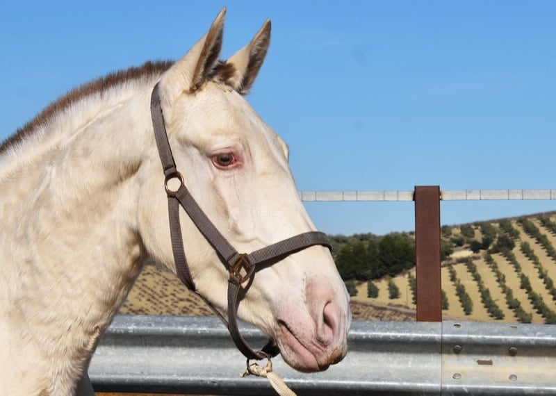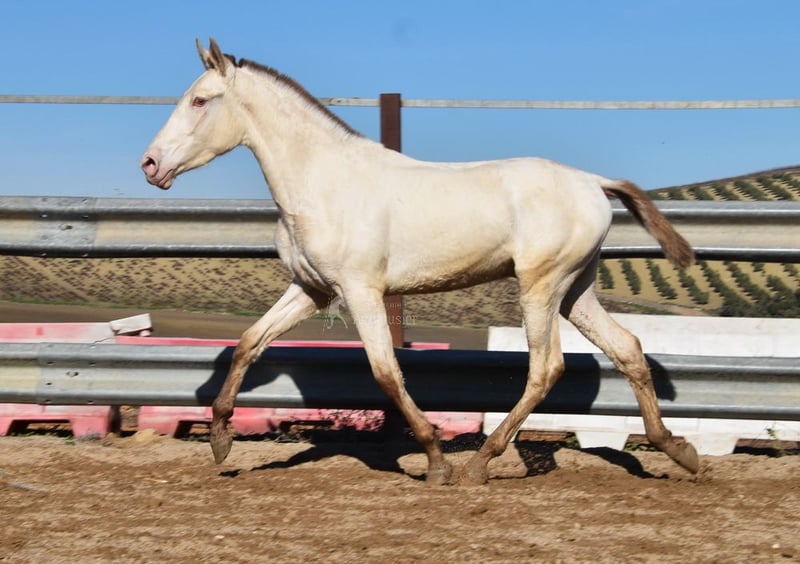 Gentle, calm temperament, curious, people-oriented, rough, outdoor with other young stallions, tall, baroque build, good movements, unique color, Bayo Perla with PRE registration, has good X-rays. Pedigree: Paco Marti, Escalera, Antares, La Aldara. www.elegante-andalusier.com