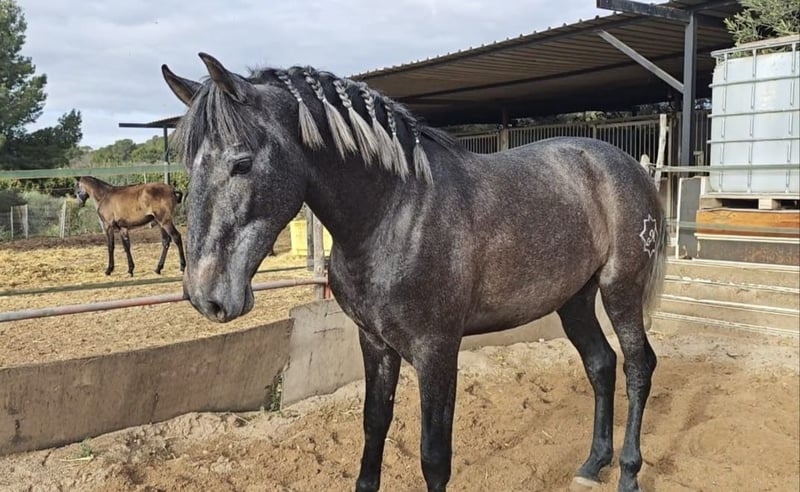 Promising PRE young stallion from family breeding, best breeding lines, species-appropriate rearing. Current height 1.58m, expected final height over 1.65m. Location Valencia. Videos are available.