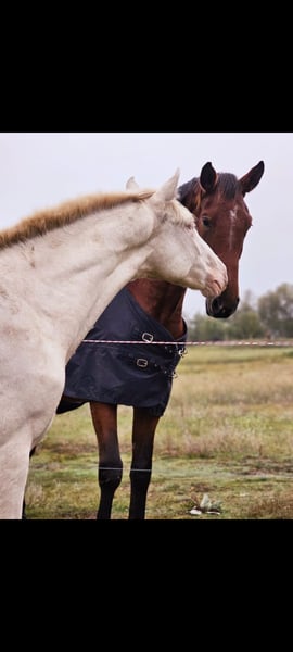 Fuego is an incredibly charming young stallion who is destined to grow into a tall and strong horse. He was born in Germany (his mother is shown in the last picture). He is very playful and gets along with everyone, often joining in all kinds of mischief. He is very affectionate and attentive to people, and he loves working with humans. Whether riding alone in the field or at home, he remains calm and steady, not easily spooked. His mane has been trimmed by himself and is growing back normally (it's low-maintenance and looks good to us). Currently, he is part of a young horse group and is enjoying his life to the fullest.