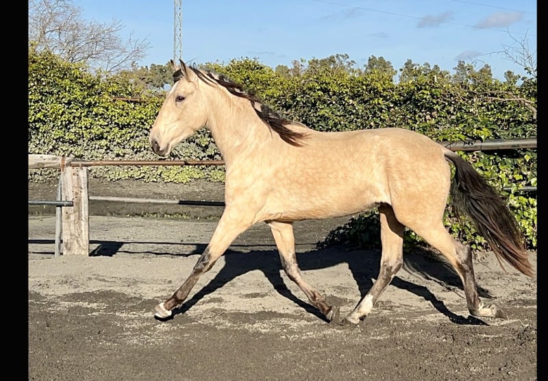 Today we would like to share with all of you pictures of this beauty. Helios is a 3 years old stallion. PRE. Full papers. Bucsksin colour. 162 cm size. Still growing. Sired by Norte A (picture attached) one of the most important and well known diluted stallions. Helios stands out not just by its bucskin colour but also by his appearance. His embodies the real essence of the andalusian horses. His character, his personality, his body and his colour make him being very special and unique. A horse with a great future ahead. Golden opportunity by those who are looking for something exclusive. Transport can be easily organised.