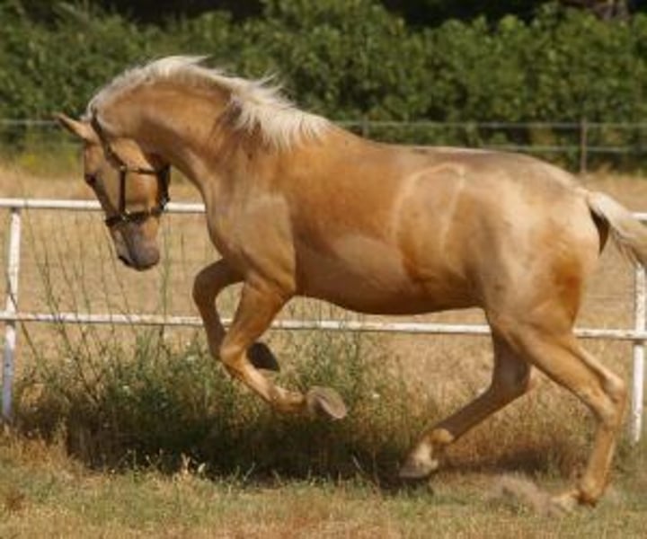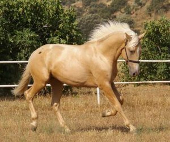 Junger, gut gebauter und vielversprechender Palomino Dieser zweijährige Palomino fällt sofort ins Auge: Er ist harmonisch, gut proportioniert und lässt bereits erahnen, welch imposantes Pferd er in einigen Jahren sein wird. Er wächst in Freilauf auf, was ihm eine gesunde und ausgeglichene Entwicklung ermöglicht. Sein Züchter pflegt täglich den Kontakt zu ihm, was sich in seinem Verhalten widerspiegelt: Er vertraut, respektiert, lässt sich anfassen und zeigt großes Interesse an Menschen. Dies ist eine großartige Gelegenheit für alle, die von einem zukünftigen Arbeitspferd träumen – ein prächtiger Palomino, ohne ein Vermögen auszugeben. Seine Schönheit und sein gutes Wesen sind bereits vorhanden... nun gilt es nur noch, ihn nach eigenem Bild zu formen. IberHorse: Wir wählen junge Pferde sorgfältig aus, wobei wir Wert auf Noblesse, Qualität und Potenzial legen. Wenn dieser junge Palomino Ihr Interesse geweckt hat, kontaktieren Sie uns gerne für ein Kennenlernen per Videokonferenz oder persönlich.