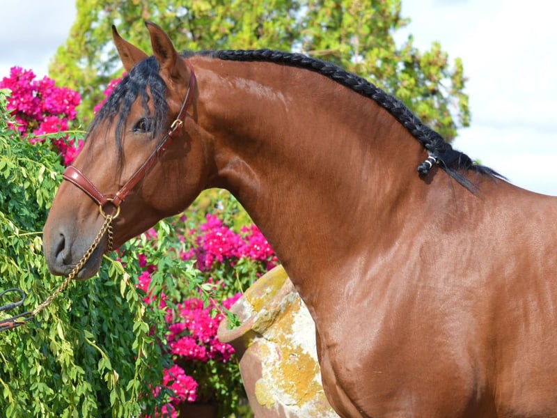 Wir präsentieren einen hervorragenden Pura-Raza-Española-Hengst, geboren im Jahr 2022, mit einem Stockmaß von 168 cm, der durch seine Ausstrahlung, Rassetypizität und ausgezeichnete Zukunftsaussichten überzeugt. Obwohl er aufgrund seines jungen Alters noch nicht angeritten ist, zeigt dieser Hengst bereits eine bemerkenswerte Ausdruckskraft in seinen Bewegungen und eine sehr ausgewogene Konformation – Eigenschaften, die auf eine vielversprechende Entwicklung für die Dressur oder die Zucht hinweisen. Sein Gebäude ist solide und harmonisch, mit einem gut definierten Rücken, einer kräftigen Kruppe und einem korrekt angesetzten Hals, was seine Eleganz und Typizität im klassischen PRE-Modell unterstreicht. Im Trab zeigt er weite, elastische Bewegungen mit gutem Schub, während der Galopp ausbalanciert ist und eine natürliche Versammlungsfähigkeit erkennen lässt. Diese Merkmale, kombiniert mit seinem edlen Charakter und seiner positiven Einstellung, machen ihn zu einer sehr interessanten Wahl für alle, die einen jungen Hengst mit echtem Potenzial und reiner Abstammung suchen. Charakterlich zeigt sich dieser Hengst aufmerksam, brav und leicht im Umgang, was die tägliche Arbeit erleichtert und auf eine positive Entwicklung in der zukünftigen Ausbildung schließen lässt. Zudem ist er piroplasmose-negativ – ein besonders geschätztes Merkmal für den Export und die selektive Zucht – und verfügt über verfügbare Röntgenaufnahmen, die volle Transparenz hinsichtlich seines Gesundheitszustands gewährleisten. Insgesamt vereint dieser junge Hengst Rassetyp, Qualität, Adel und hervorragende körperliche Voraussetzungen und ist damit eine ideale Investition für alle, die ein Pferd mit echtem Potenzial und viel Zukunft suchen.